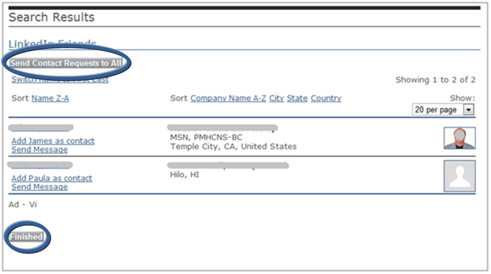 A page that lists all of your LinkedIn contacts who are also APNA Members and on Member Bridge will appear. You can request to add them all as contacts with the click of a button, add members individually, or send them messages: