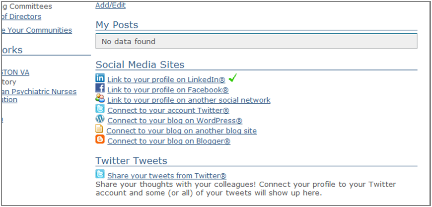 Use these new features to expand your professional networking opportunities on Member Bridge! Quickly fill out your Member Bridge profile by importing information from your LinkedIn profile. Then, find out which of your LinkedIn connections are on Member Bridge and add them to your contacts with the click of a button. You can now also link to your Facebook profile, blog, and other sites, as well as display your tweets from Twitter directly on your Member Bridge profile.