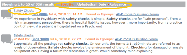 A list of results will appear. You can sort these alphabetically, by date, or by relevance. Click on the subject of the message to view it: