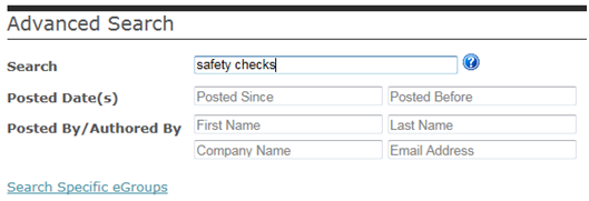 Enter any of the info you would like to search by into the fields on the Advanced Search screen. For example, if I want to find all messages pertaining to safety checks, I simply enter the phrase into the